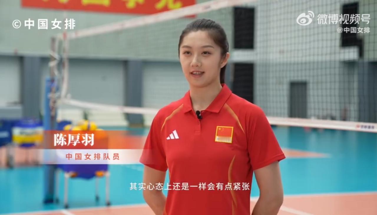 第三位是陈厚羽,她说:今年的比赛任务很重,自己要把压力变成动力,通过训练技能和体能都有所提高。