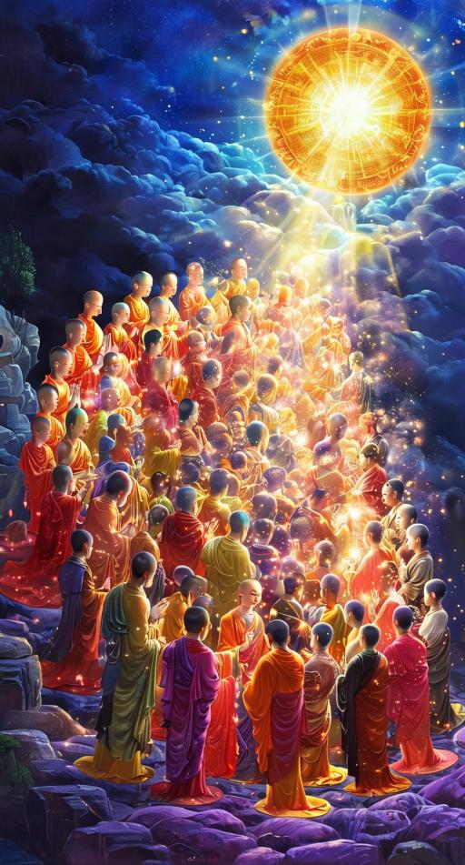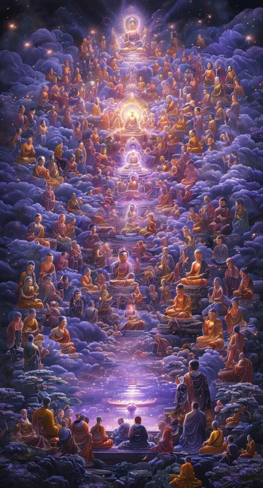 《愣严经》卷五(五) 50 群聚紫光照法界,恒沙众生修净过。 佛证圆满无障碍,智