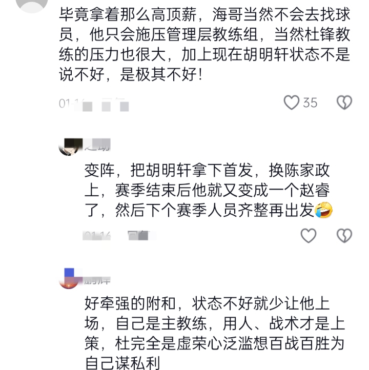 胡明轩,在场上,也许,他急躁,他迷茫……最后,他打的不好,被杜锋骂了。