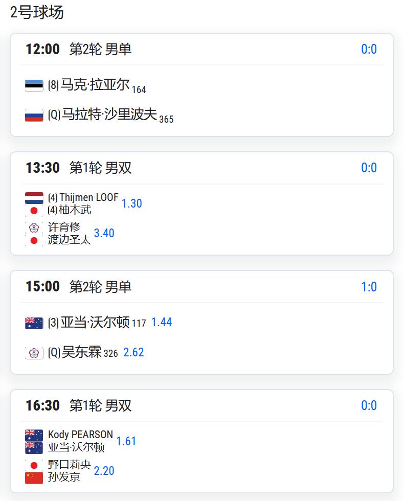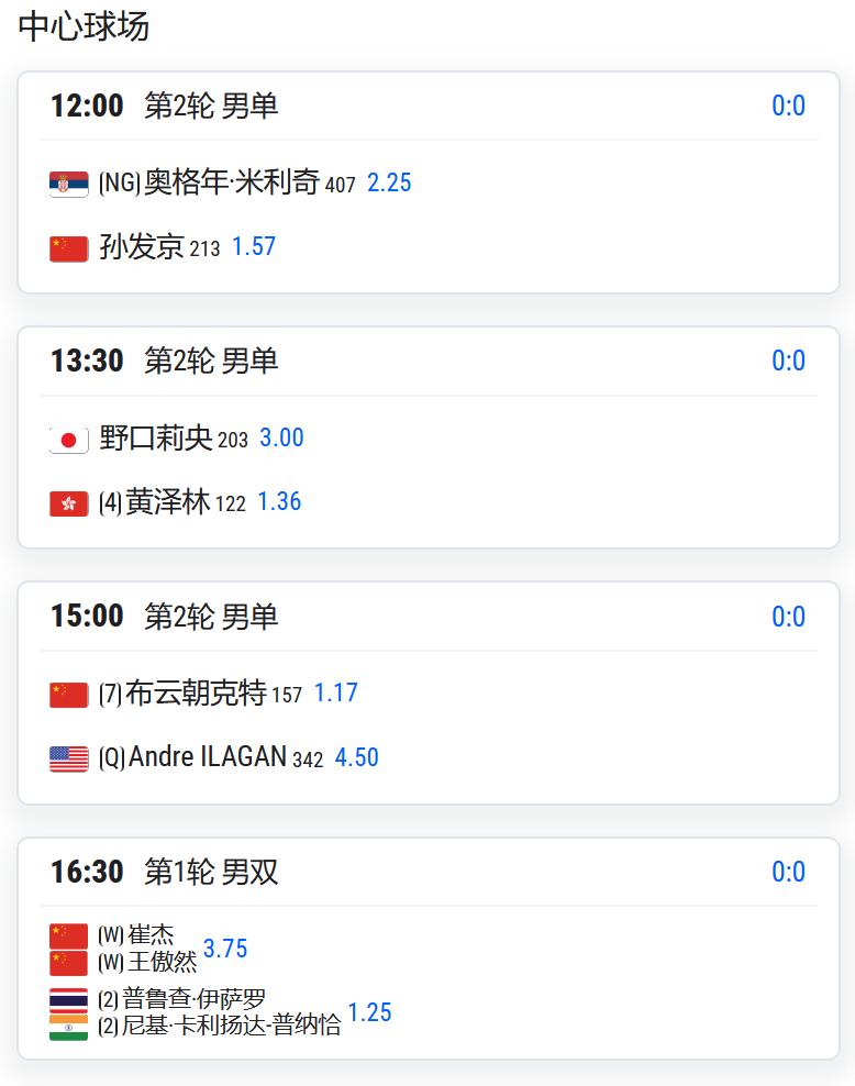 CH75九江,男单第二轮,孙发京将对阵米利奇;