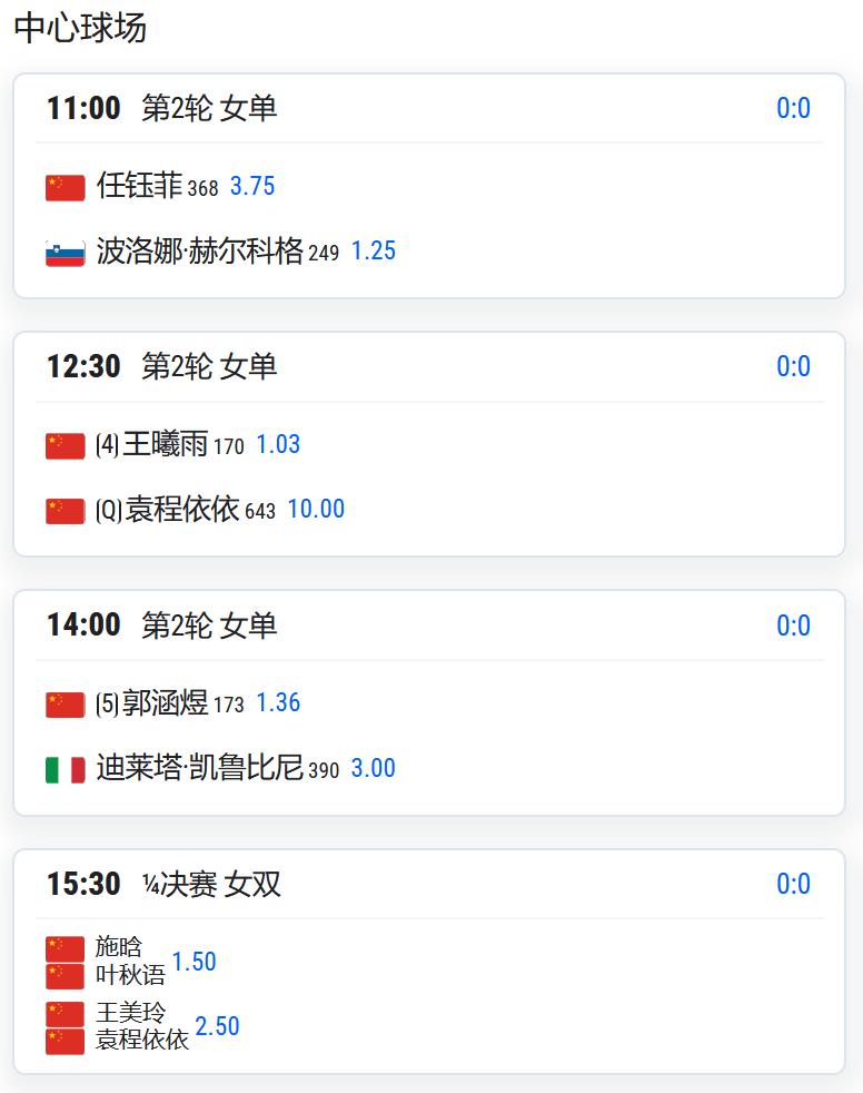 王曦雨将对阵袁程依依;