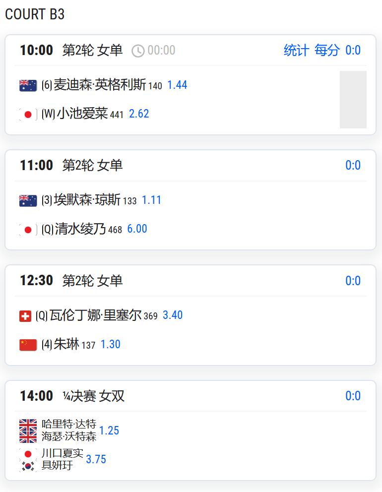 W100岐阜,女单第二轮,朱琳将对阵资格赛球员里塞尔;