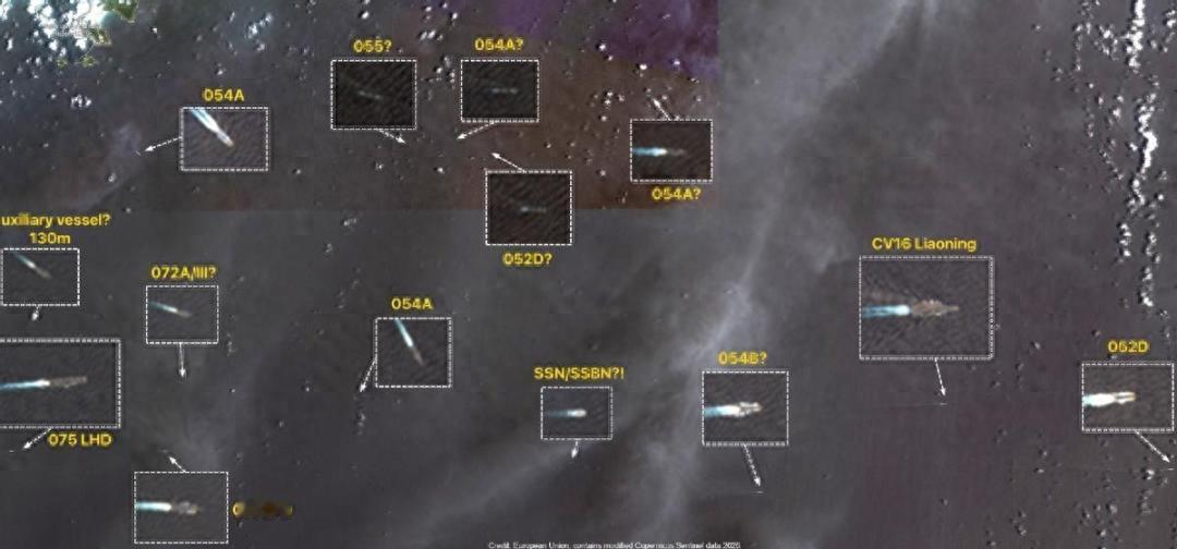 4月25日,欧洲“哨兵-2”卫星在南海上空捕捉到震撼一幕:辽宁舰正以高速“S弯”机动,尾流在海上画圈——这是应对饱和反舰导弹打击的实战化规避动作。沿途还有至少14艘大型军舰随行。