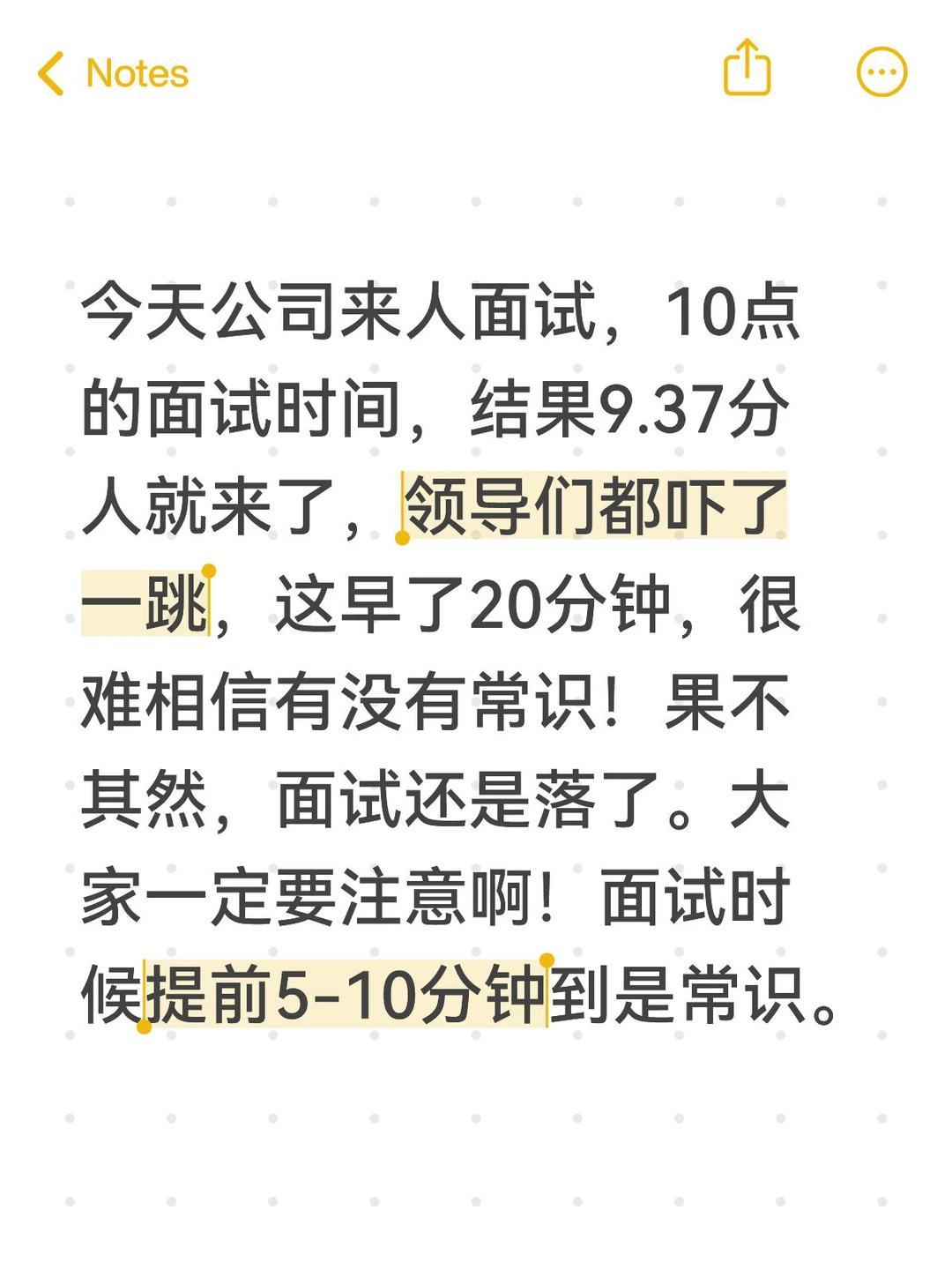 因为如果你到太早, 有可能面试官在这个时段有其他的安排,临时去协调和更改也是不太好的。所以面试要守时,不是不迟到就行了,也不要太早哦!这才是正确的“时间观念”!