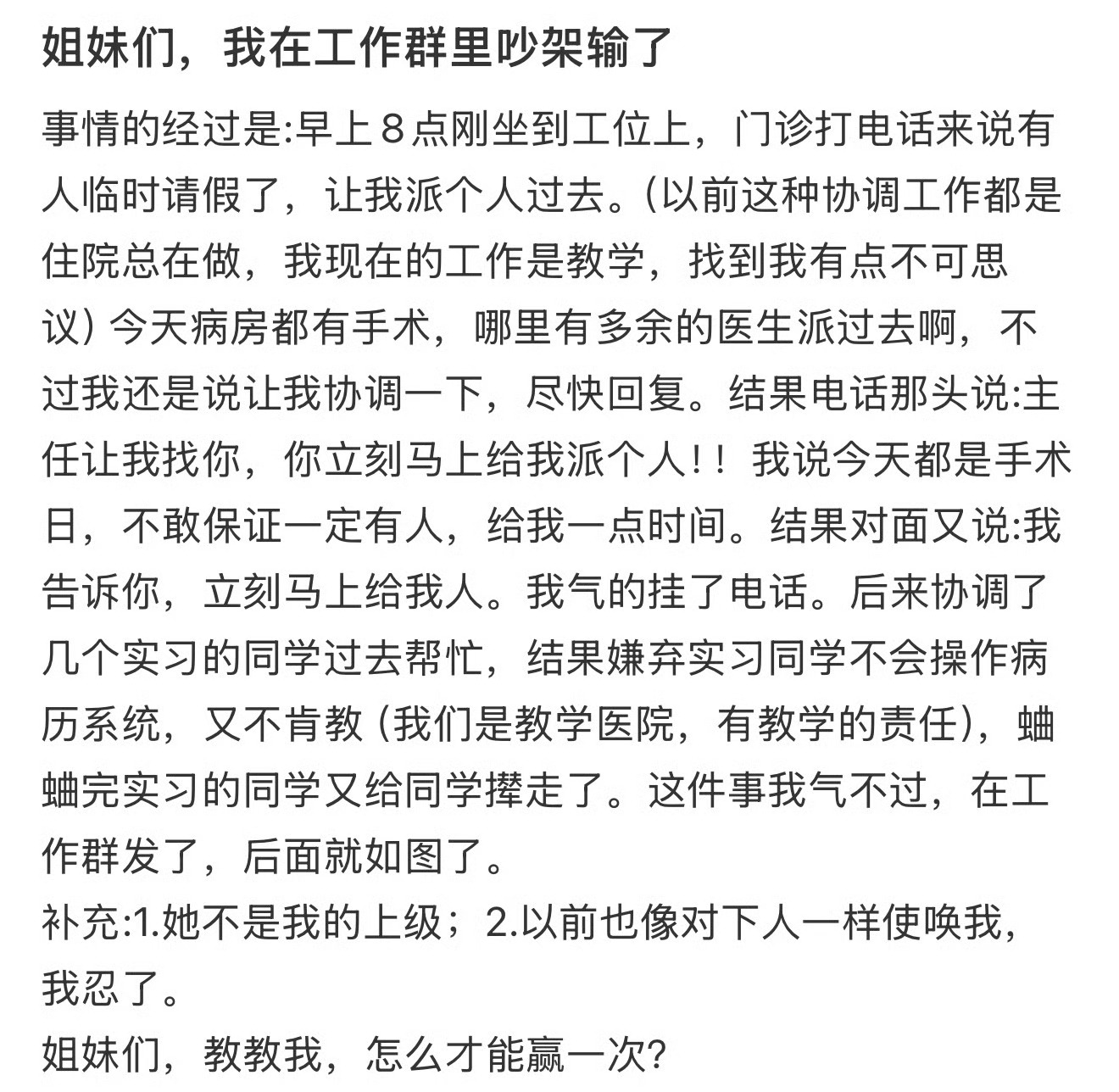 姐妹们,我在工作群里吵架输了