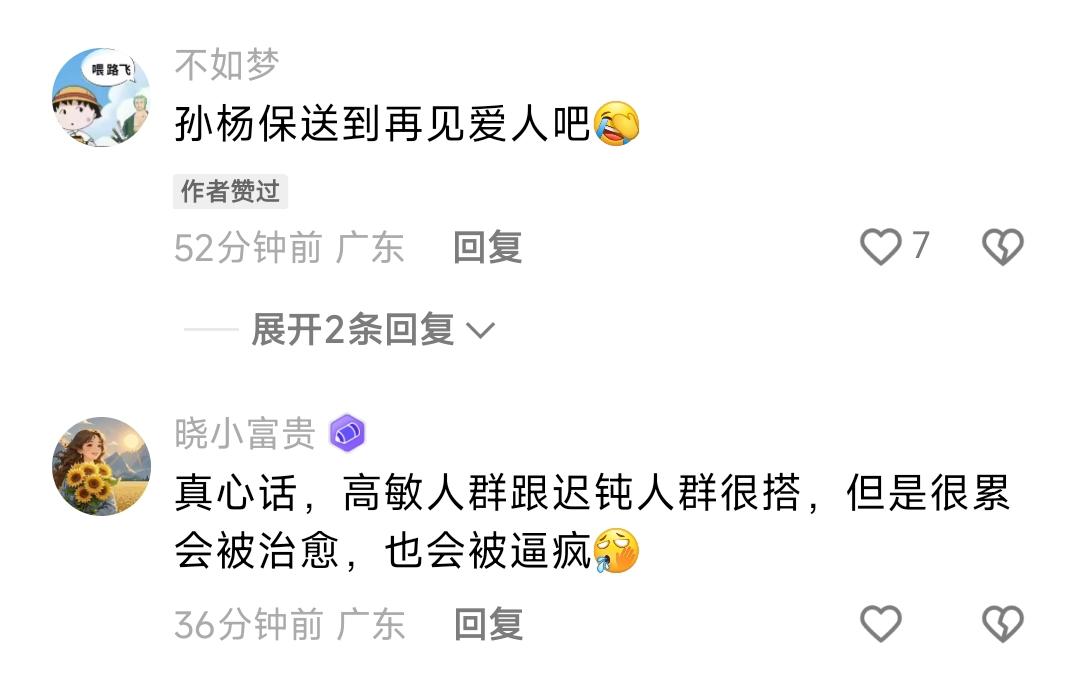 真心话,高敏人群跟迟钝人群很搭,但是很累会被治愈,也会被逼疯[打脸]