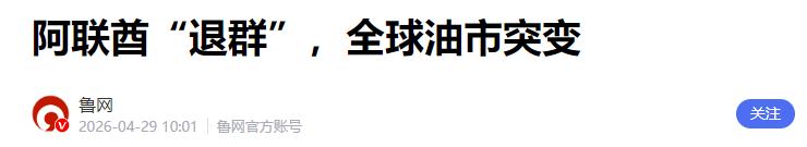 4月28日,阿联酋官方发表声明,宣布从5月1日起正式退出石油输出国组织(欧佩克)以及“欧佩克+”机制,这个消息一出来,国际油价立刻就像坐了过山车,大幅波动起来,全球能源市场都跟着震动了。