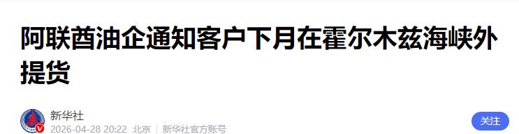 就在同一天,美国方面传出消息,阿联酋的国营石油企业阿布扎比国家石油公司已经通知部分长期客户,5月份可以在波斯湾外的富查伊拉港,用船对船转运的方式提取货物,这其中就包括上扎库姆原油这类主力产品。这两件事凑在一起,可不是巧合,而是阿联酋早就盘算好的一步大棋。