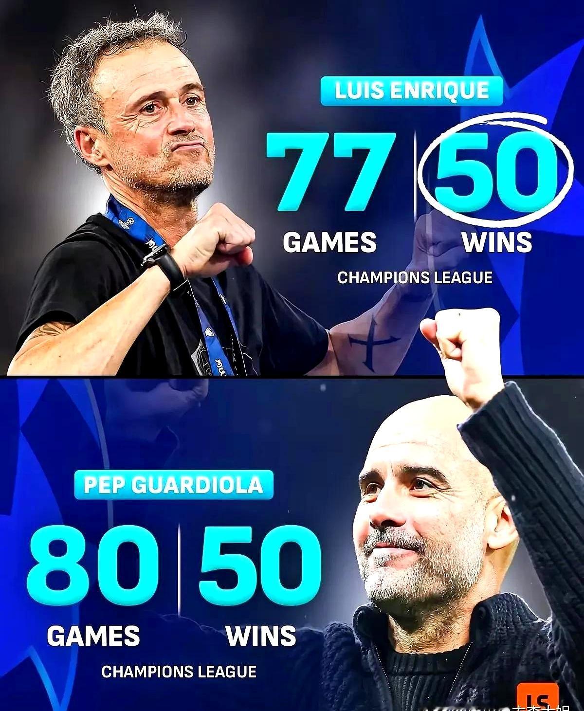 恩里克真把巴黎圣日耳曼给盘活了。 77场欧冠拿到50胜,这速度直接把瓜迪奥