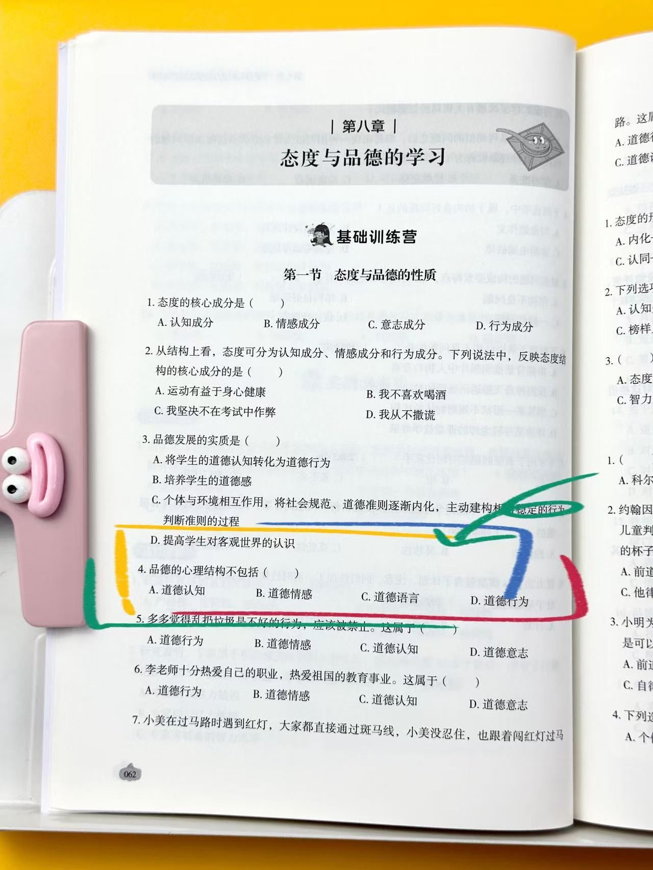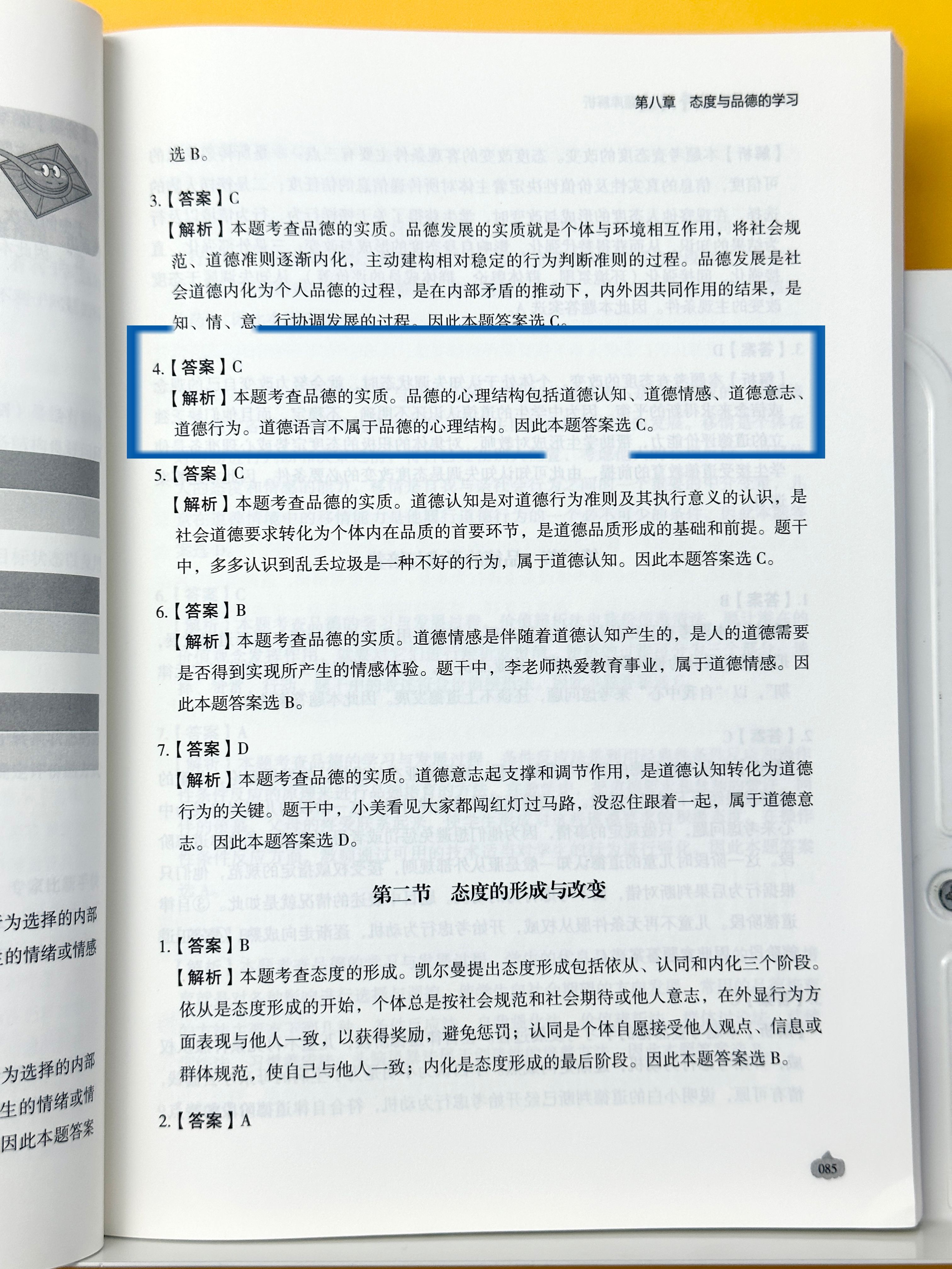 2026谢康康333教育综合北斗闪过题库---教育心理学---第八章 态度与品德的学习---基础训练营---第一节 态度与品德的性质选择题4
