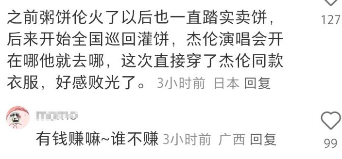 事实上,粥饼伦比黑伦要受欢迎,粉丝也比对方多,但自从他火了后,并没有蹭周杰伦的热度,而是开启了全国卖饼模式,即使是开直播,也没带货,靠自己的劳动赚钱,获得了很多网友的夸赞。