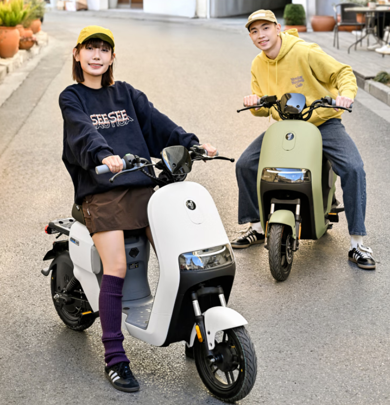 这款车重新诠释了都市基本款电动自行车的定义。它摒弃了宽大的前面板,采用极简的方向柱设计,前部集成了高亮度光感大灯,照射距离十分可观。该车拥有超宽踏板,双脚能够自由摆放。内置摩托车级龙骨车架,结实又耐用。