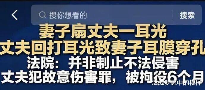 妻子动手一巴掌丈夫还手一巴掌导致妻子耳膜穿孔,就直接按照故意伤害罪给判了,因为达到轻伤标准,并没有按照家暴处理,反之性别一换就是娱乐新闻了,连家暴都没算。