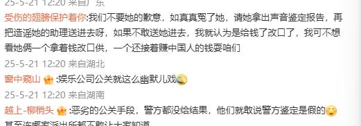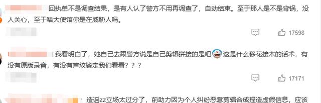 “哪个公安机关啊?报警记录和声纹鉴定报告呢?助理RH 不拘留 只是口头教育就结束了?开玩笑吗?”
