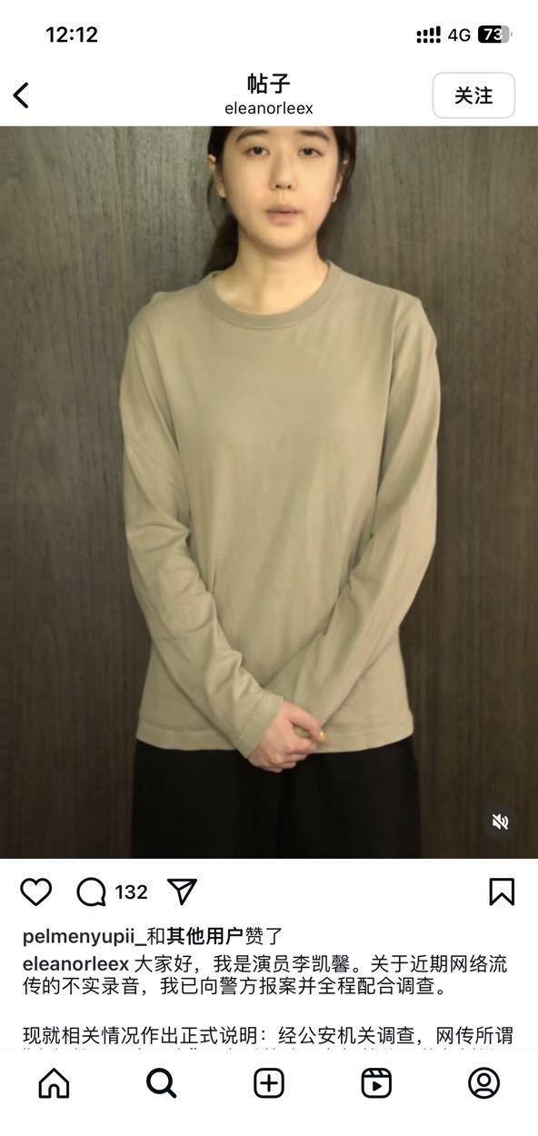 他称自己发布的视频是通过恶意剪辑,合成,捏造的,并不是真的,自己已经受到了公安机关的批评教育,认识到自己对于李凯馨女士造成的严重影响,特此道歉。