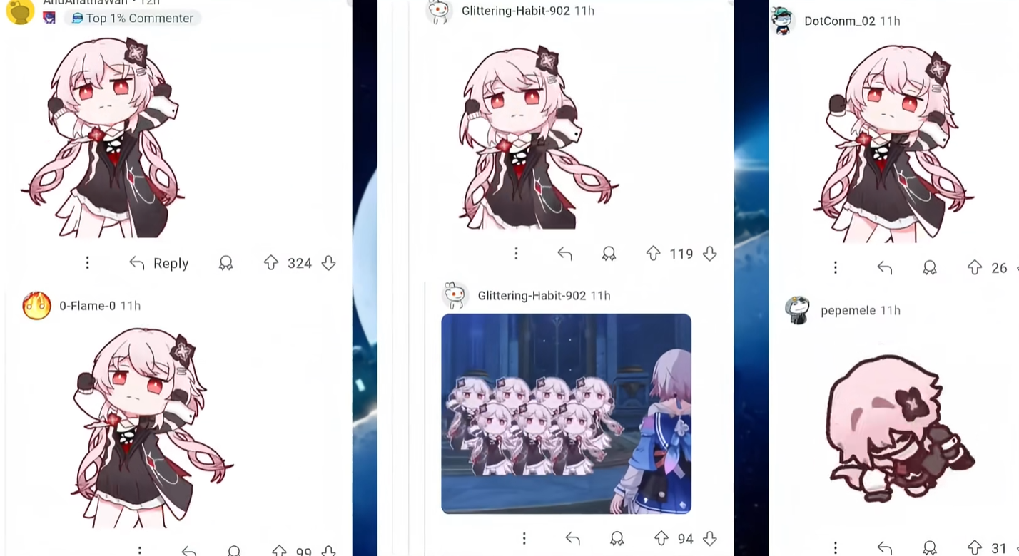 说起来,这已经不是崩铁玩家第一次制造类似的模因病毒了。早在游戏刚开服时,就有大佬“莉可Kurisu”用小黑塔的“转圈圈”洗脑了全球玩家。知更鸟的歌,评论区也非常积极玩梗