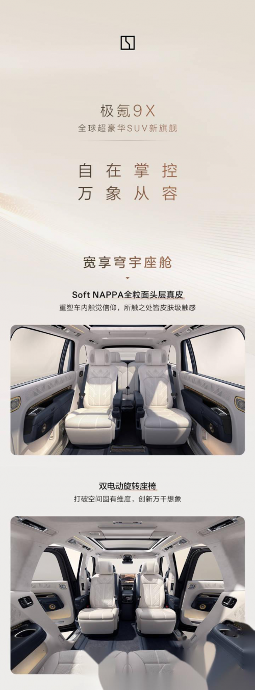 极氪9X:“自在掌控,万象从容”的处世哲学,让驾驶成为一种生活态度的表达。从容不迫是中国传统君子的处世之道,这种态度在极氪9X的设计中无处不在。飞翼屏的 “随需滑移” 功能,无需手动调整角度,屏幕会根据座椅位置自动适配最佳观看视角,避免了 手忙脚乱调屏幕的尴尬,尽显掌控全局的从容;AI 数字底盘如同“君子的沉稳气度”,面对颠簸路面时,能实时调整悬挂,让车身始终保持平稳。这种设计,将抽象的处世哲学转化为可感知的驾驶体验。