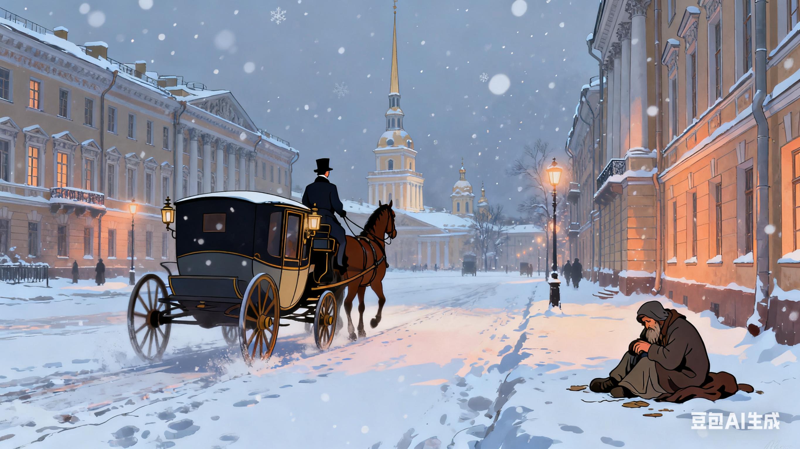 1843 年的圣彼得堡正值沙皇尼古拉一世统治时期,专制制度与农奴制度的矛盾暗流涌动,报刊审查严苛,底层民众在严寒与苦难中挣扎,而贵族与官僚则沉浸在虚假的繁荣里。