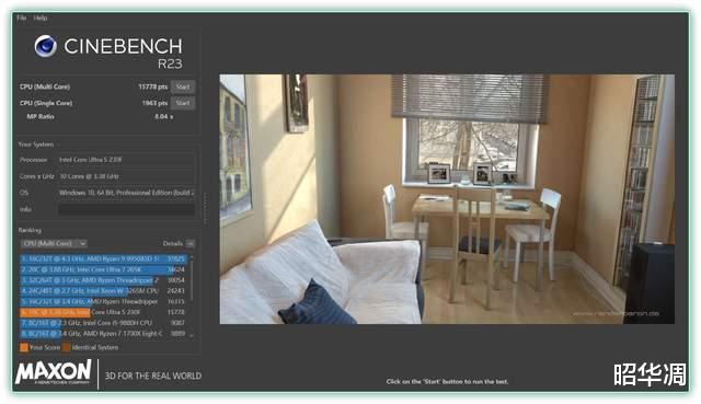 ▼CINEBENCH R23 测试成绩,单核 1963、多核 15778