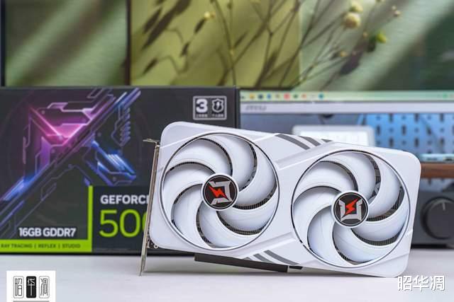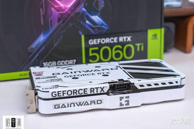 ▼耕升 GeForce RTX 5060 Ti 追风是张非常标准的双风扇显卡,245.5mm * 142.5mm * 40mm 的长宽高,也就代表了大部分机箱都能完美兼容,顶部的 LOGO 也支持 ARGB 灯效。