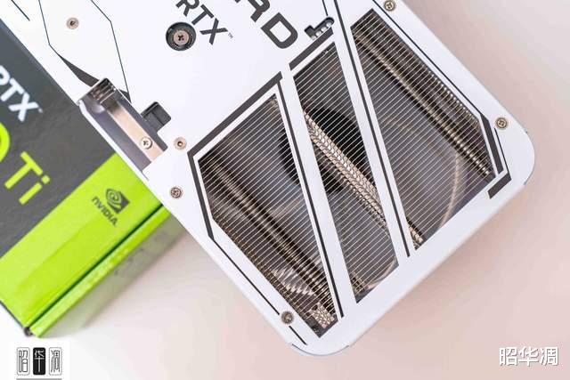 ▼右侧做了镂空,方便气流通过快速带走热量。这里也能看到显卡搭载的三根 6mm 镀镍热管,配合风扇、散热鳍片以及铜底直触,形成名为「风盾 Mini] 散热结构。