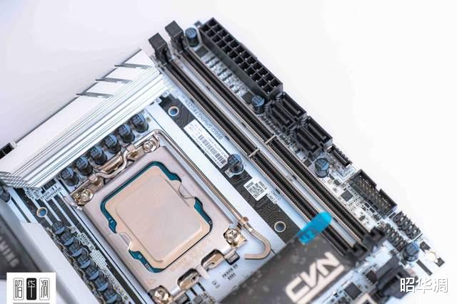 ▼存储方面主板提供了双 M.2 插槽,其中 一 块在主板背面。正面插槽走的 CPU 直连,支持 PCIe 5.0 x 4,并配备了独立的散热模块,下方为 PCIe 5.0 x 16 扩展插槽,配备了金属骨架,可以为大型显卡提供强有力的支撑。