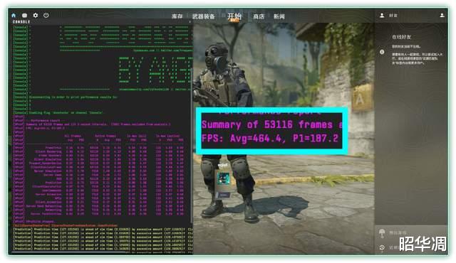 ▼网游测试利用 CS2 进行, 1080P 分辨率 + 低画质,平均帧率能达到 464.4517.1FPS ,1%Low 帧率 187.2,