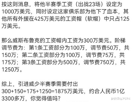 这个消息在国内引发不少争议,CBA工资帽最高只有425万,若是半个赛季就需要支付千万级别美金的合同,威少需要支付人民币过亿的投入,有媒体点评是威少团队放出消息,逼宫尽快确定合同的操作。