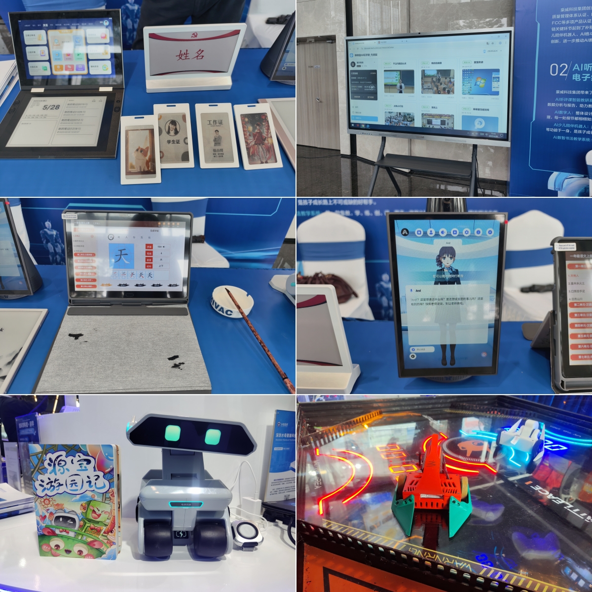 在互动体验环节,豪威展示了一系列先进的人工智能教育装备产品:AI陪伴机器人、棒棒糖AI听评课系统、智能格斗机器人、AI智慧书法、AI数字人,以及智能胸卡、电子纸桌牌、墨水屏阅读器等电子纸系列产品,展现了豪威在人工智能领域的深厚积累和强大研发能力,通过现场演示操作,吸引了众多关注和热烈讨论。