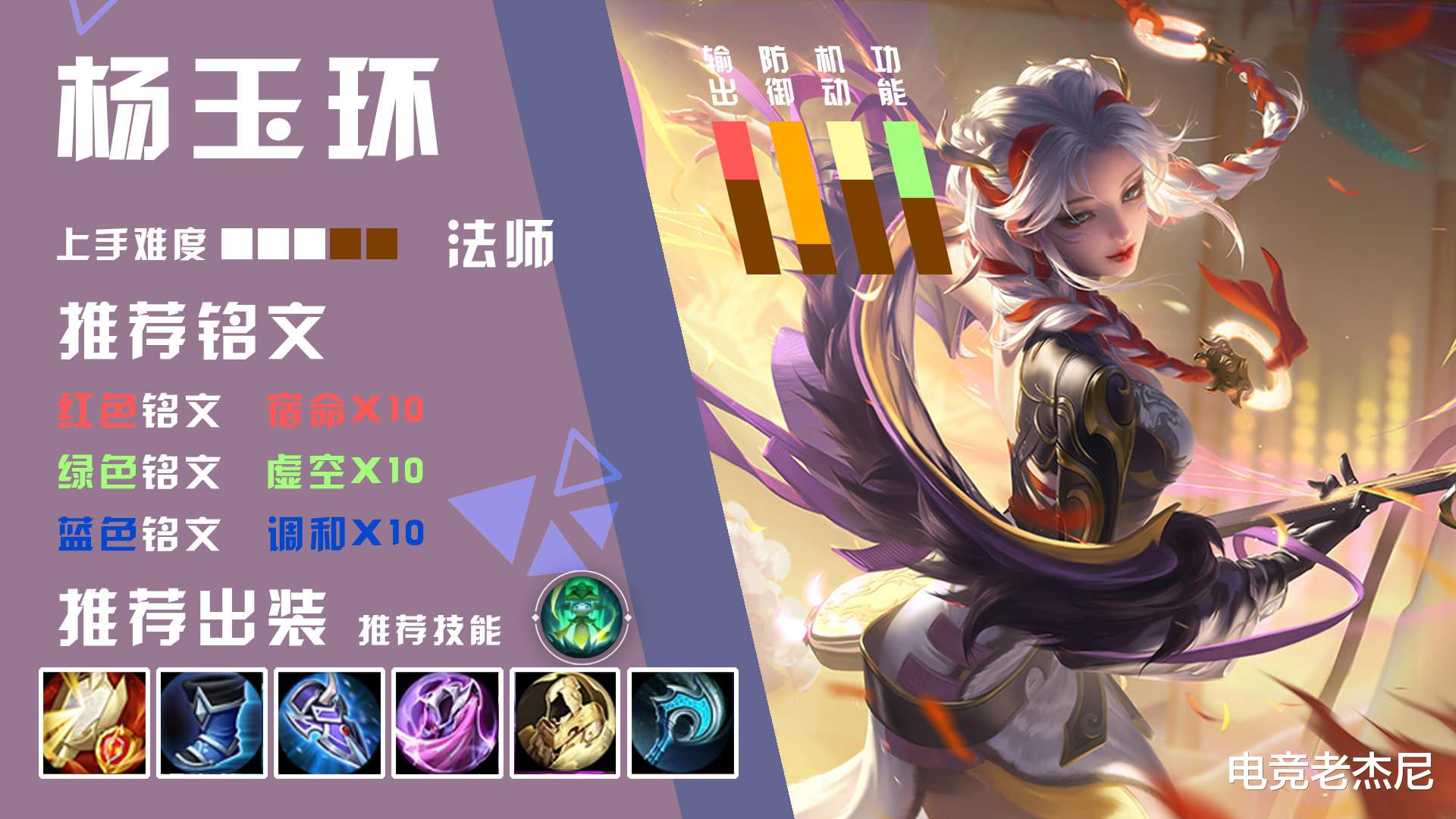 杨玉环肉铭文、肉出装,可以放心定向1A挂减速,搭配冰痕之握,形昭之鉴,干扰和留人能力都非常强!