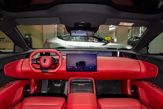 车顶与前翼子板均集成激光雷达,B柱所属标识低调点缀,既彰显了车辆强大的感知硬件实力,又不破坏整体设计的协调性。车身侧面采用大溜背造型,搭配隐藏式门把手、低风阻轮毂与流畅腰线,进一步优化空气动力学表现,同时拉长车身视觉比例,气场十足。车尾造型圆润饱满,细长贯穿式尾灯与前脸设计遥相呼应,主动升降扰流板与掀背式电动尾门,既保留了运动基因,又兼顾实用属性,动态灯光交互更给日常用车增添了几分仪式感,让设计美感不再局限于静态展示,更融入每一次用车细节。