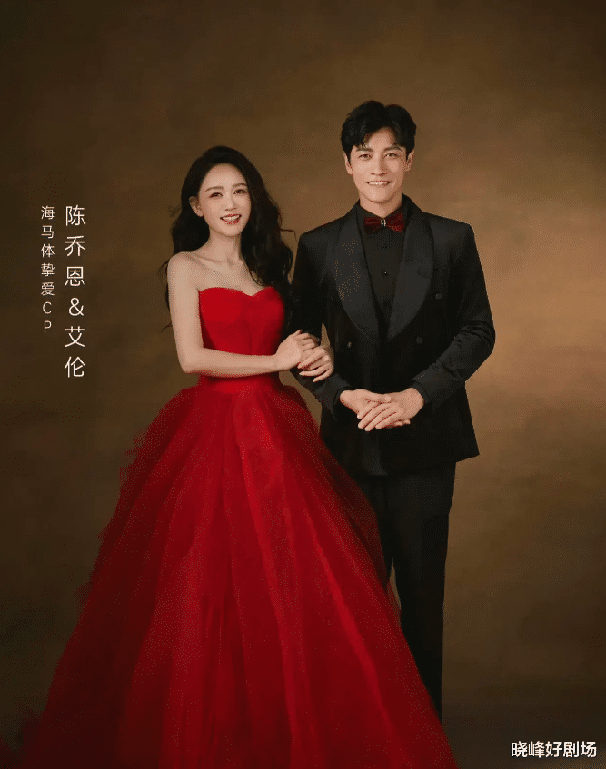 而身着正红色婚纱的陈乔恩,在蓬蓬纱裙的映衬下,乌黑的大波浪随意披着,显得娇艳无比。她笑容满面地手挽着艾伦,那种轻松自在、肆意洒脱的感觉,与一旁严肃端庄的新娘形成鲜明对比,仿佛是老父亲送女儿出嫁的场景。
