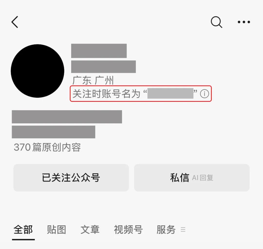 这次对公众号的小主页做了调整,如果该公众号在你关注以后改了名,现在会在账号名下方显示一行灰色字,提示“关注时账号名为×××”。