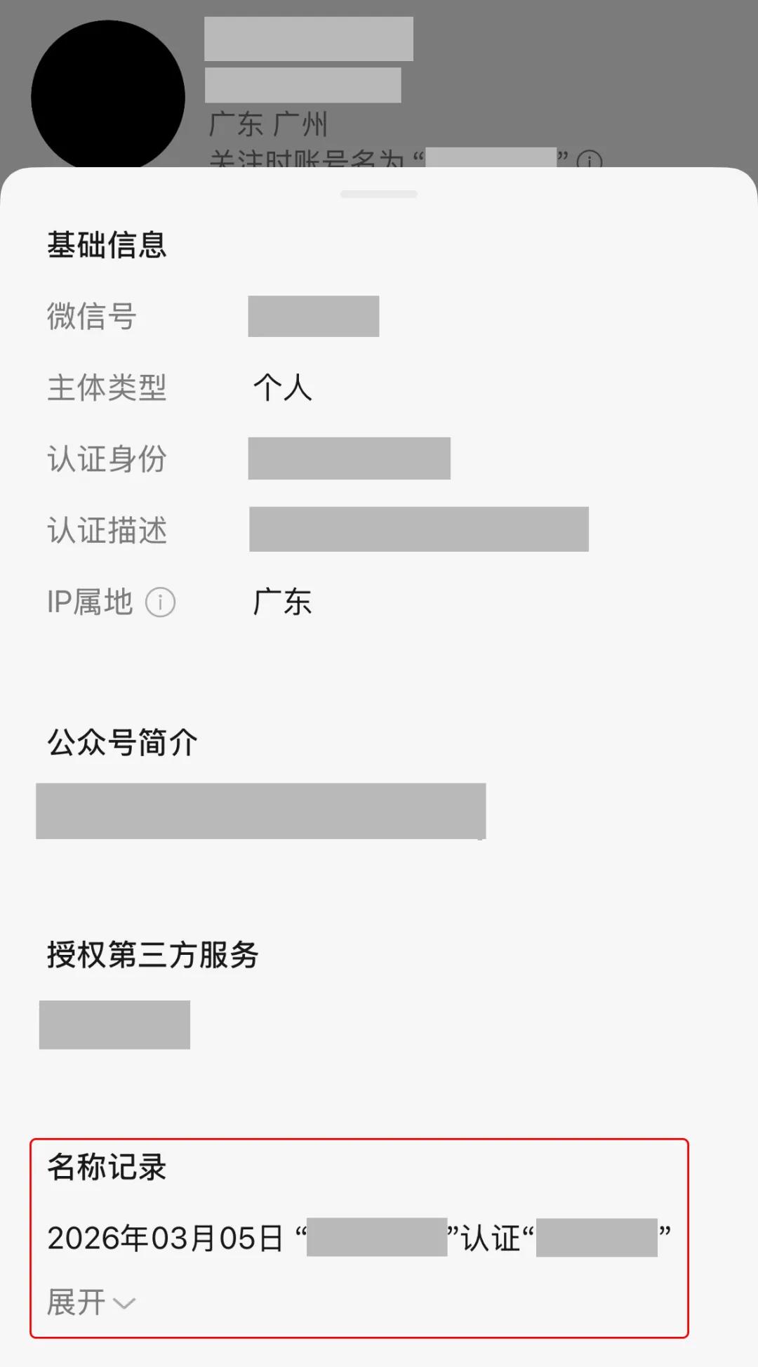 点击该提示后面的感叹号图标,还会快速弹出该账号的资料信息,可以查看它的详细更名记录。