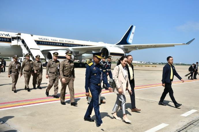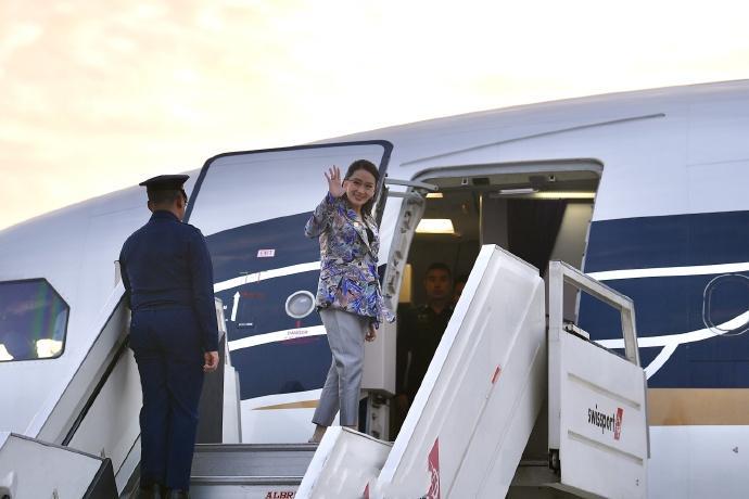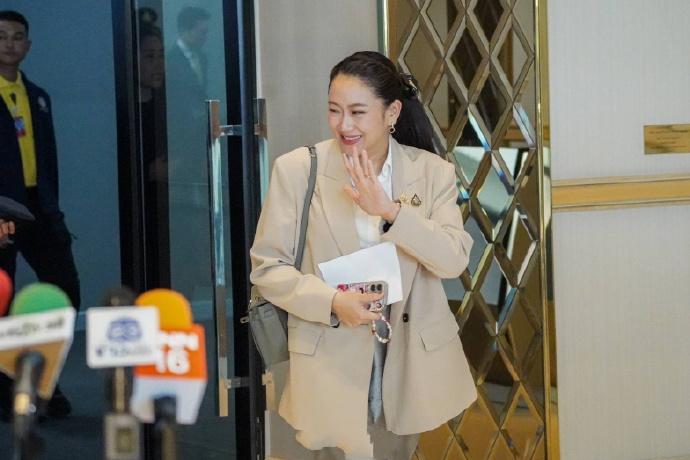 不得不说泰国美女总理穿宽松的咖色西装也很大气,从她的表情也能看出她回到自己的国土也超级开心,下飞机的时候边和大家打招呼还边微笑。一连几天在外奔波似乎一点也不觉得累。毕竟佩通坦才38岁,也正是精力充沛的时候,还有媒体透露佩通坦在飞机上也没有休息,还与团队一同开会研究工作。