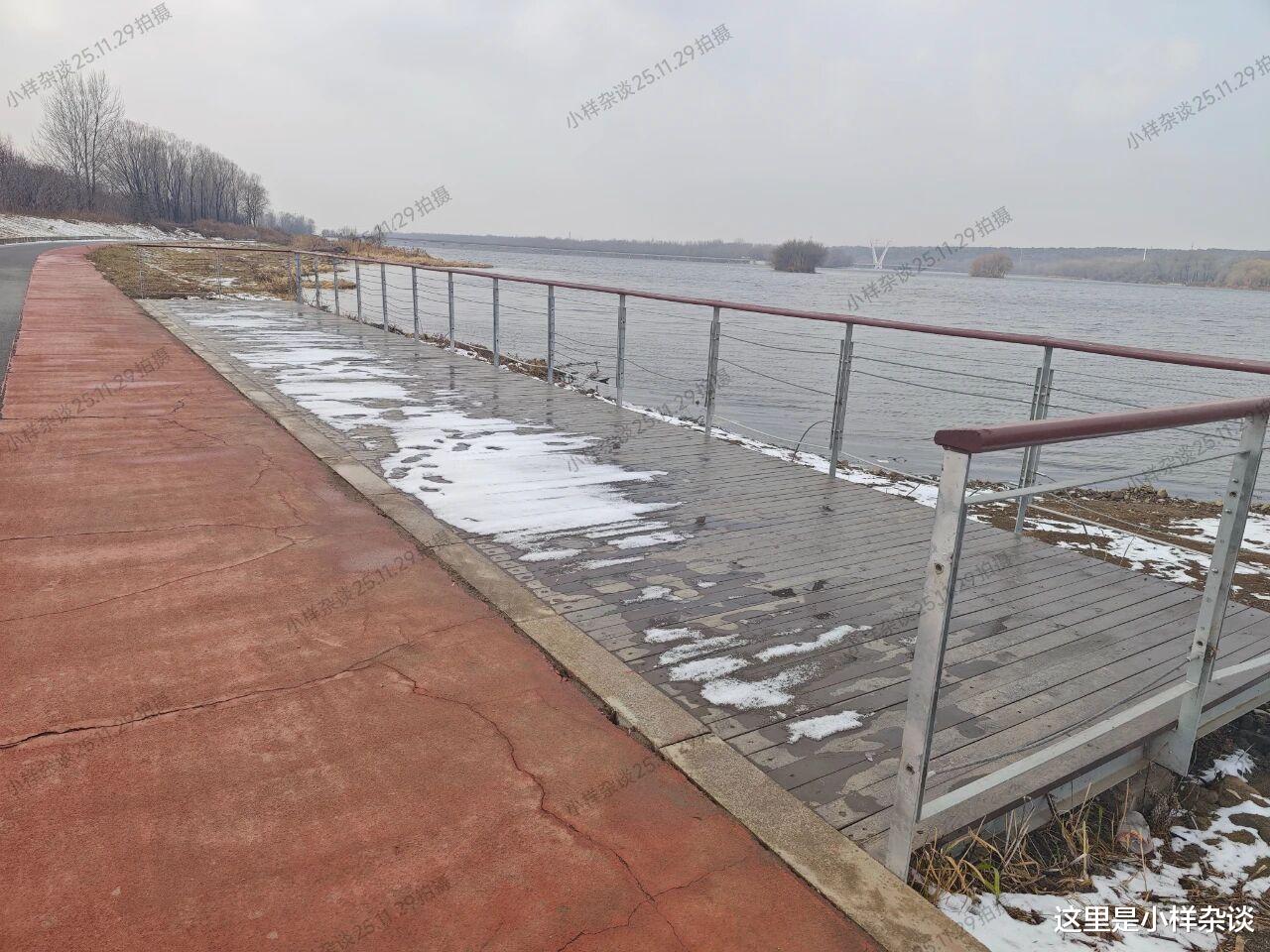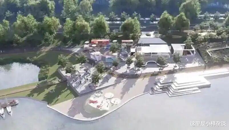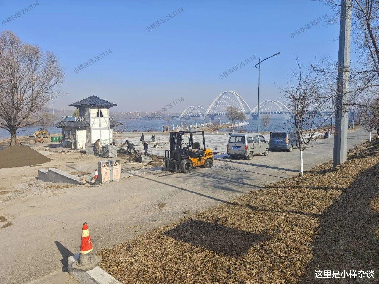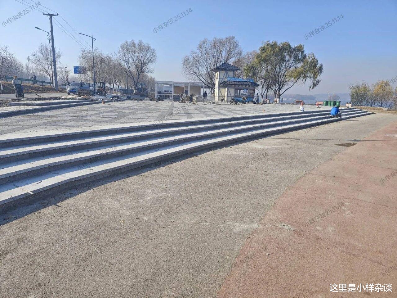在码头处修建了一个小广场,滨河平整了一下土地,把上图这个观景台加装了一个木质的踏板。