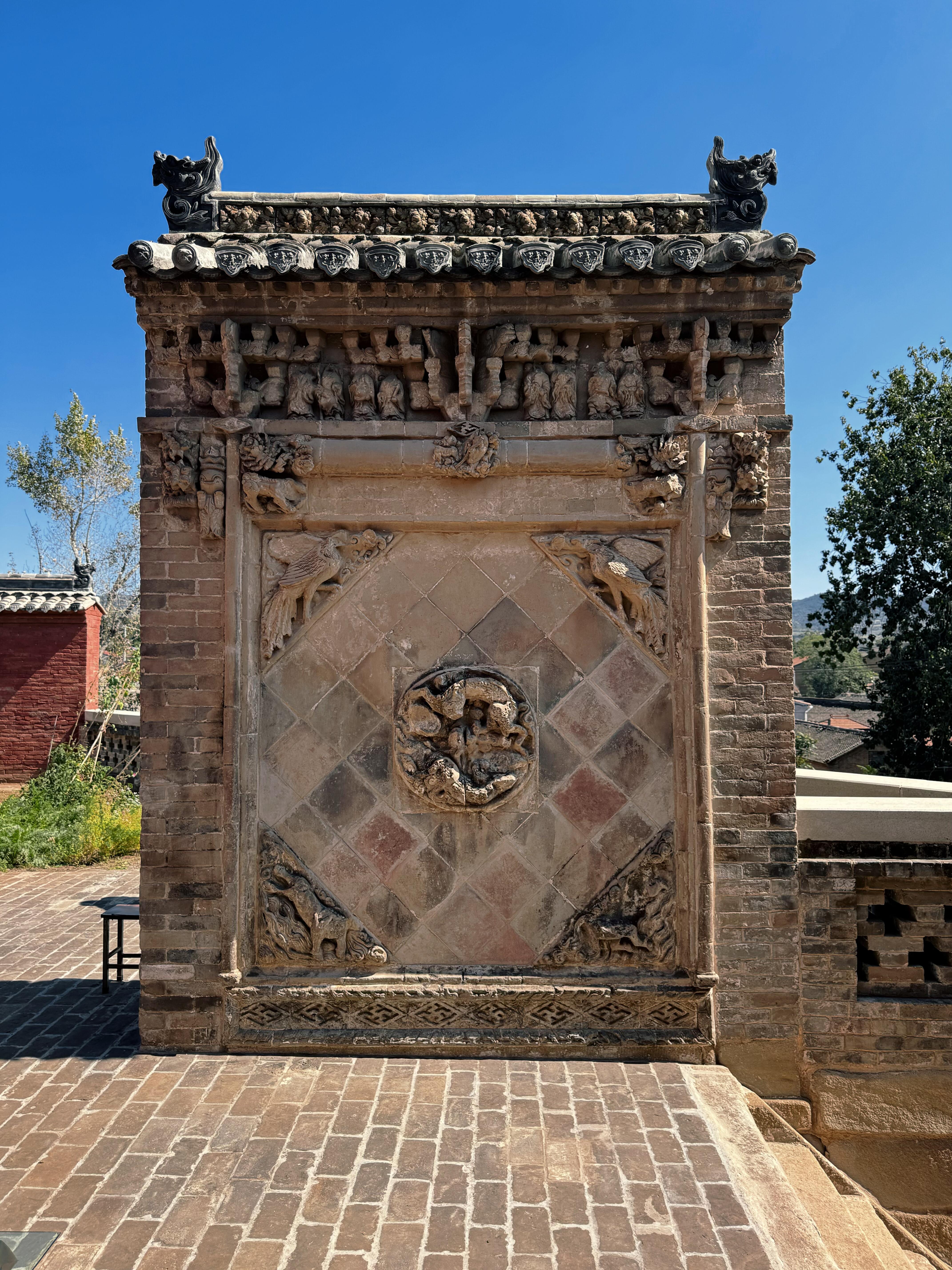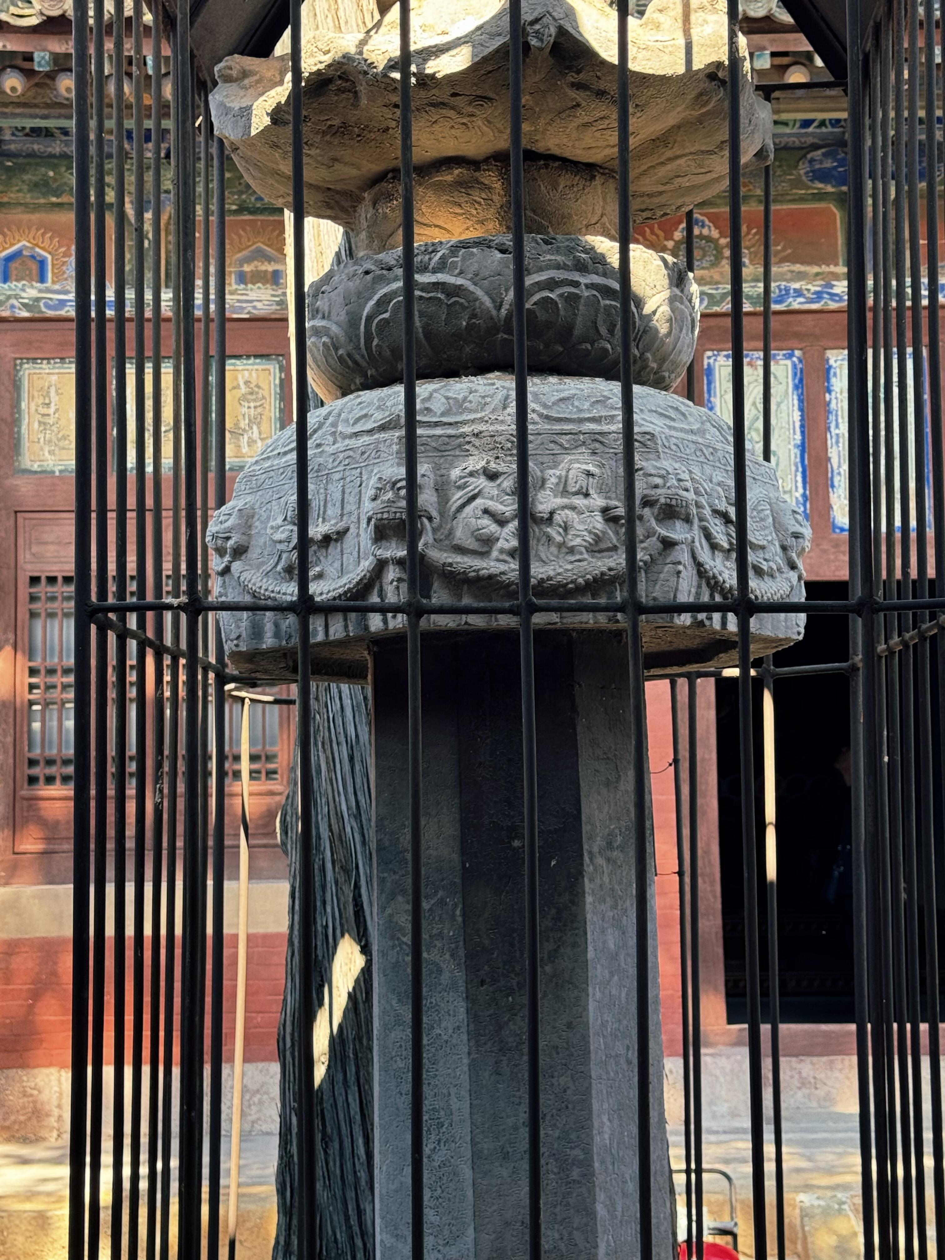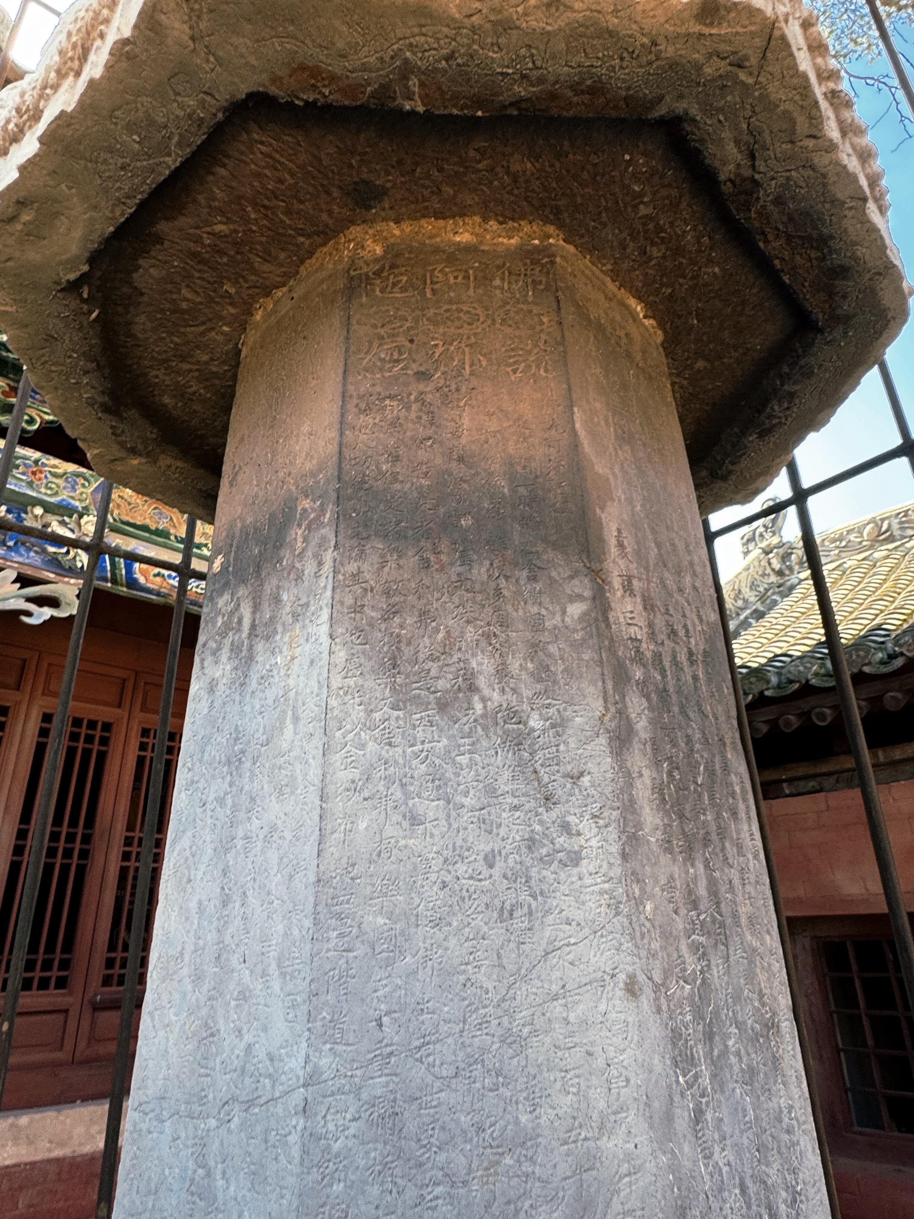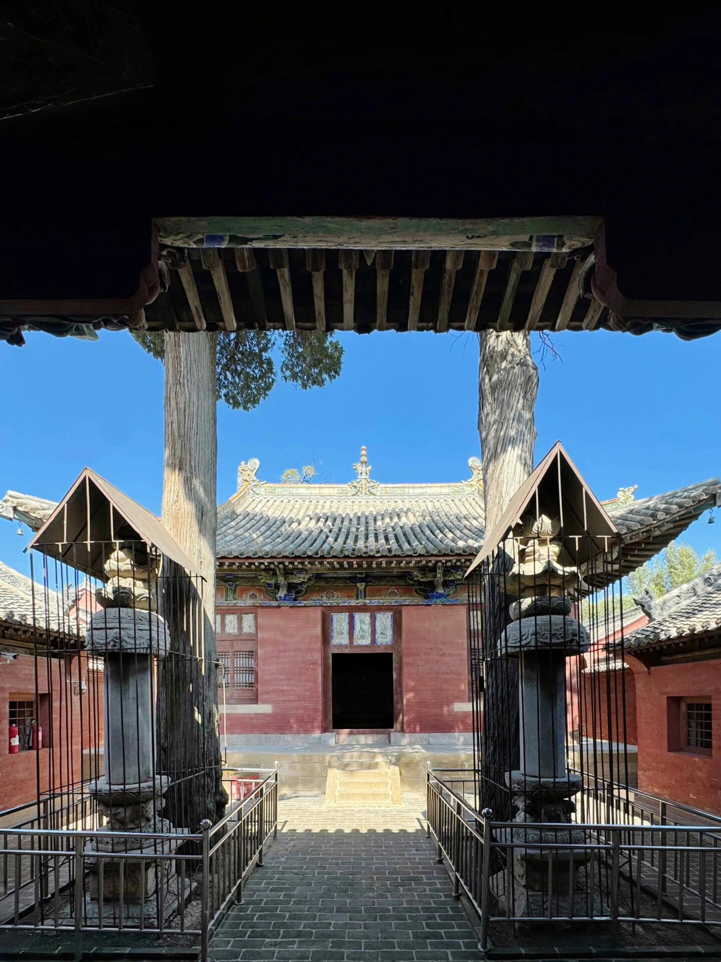 再往前走,便是两座经幢,它们建于后周广顺三年,是嘉祥寺最为古老的见证者。东幢高3.96米,刻有《佛顶尊胜陀罗尼经》;西幢高4.19米,刻着《佛说阿弥陀佛经》。这些经文,历经风雨,字迹虽有些模糊,但每一笔每一划,都仿佛在诉说着千年前的佛法奥义。它们静静地立在毗卢殿前,宛如两位忠诚的卫士,守护着这座寺院,见证着无数的日出日落,兴衰荣辱。