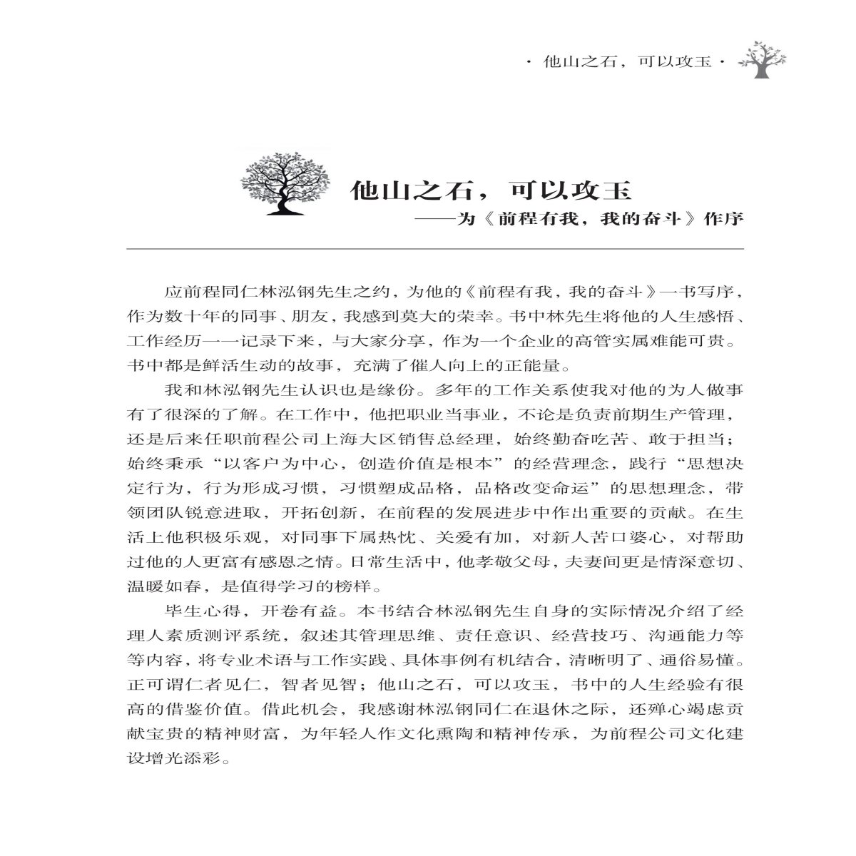 总而言之,《前程有我,我的奋斗意境》是一本集实用性、启发性与传承性于一体的优秀职场读物。它像一座灯塔,为在职业海洋中航行的我们指明方向;也像一位挚友,陪伴我们走过奋斗的每一个阶段。我们诚挚推荐给每一位心怀梦想、脚踏实地、渴望在职业生涯中持续精进的朋友。愿这本满载智慧与祝福的书籍,能陪伴所有阅读它的同仁和朋友们,共同迈向生活愉快、阖家幸福、事业有成、前程美好的明天。