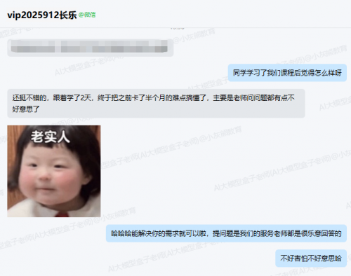 报名前我还有点心虚,毕竟AI看起来太高深了,感觉不学个博士都进不去门。顾问问我:“你会Java和Python?”我说会。她笑着说:“那你已经赢在起点。剩下的,就是学会和AI‘说话’。”