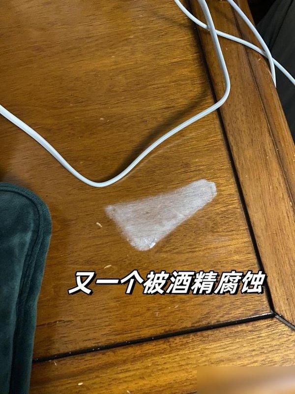 家具店的人来一看,说那层清漆被酒精溶解了,得重新刷漆,不然木头会受潮变形,刷漆又要花八百块——她现在每次擦桌子都只敢用拧干的湿布,连洗洁精都不敢放。