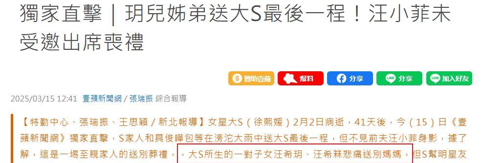 即便在这样的沉痛时刻,他的举动显示出对大S的尊重与怀念。