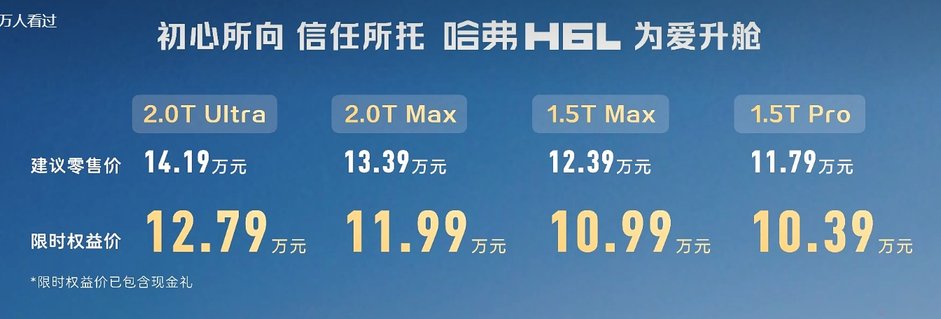 在消费升级与理性购车并存的市场环境下,哈弗H6L以极具冲击力的价格策略,打破了中型SUV与紧凑级SUV的价格壁垒。10.39万的起的限时权益价,让消费者以紧凑级SUV的预算,就能拥有中型大五座SUV的宽适空间与全面配置,真正实现“为爱升舱不加价”。