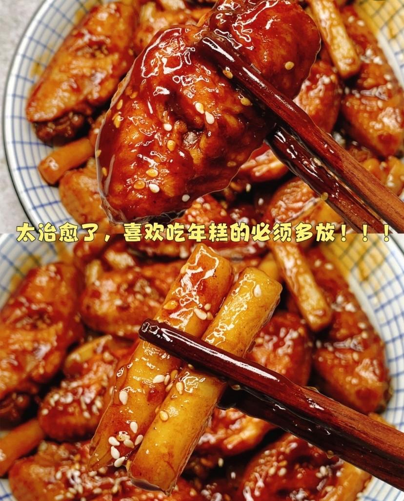 你现在可以享受这道美味的可乐鸡翅年糕了!不要忘记拍照分享哦,让朋友们也一起享受这美味!