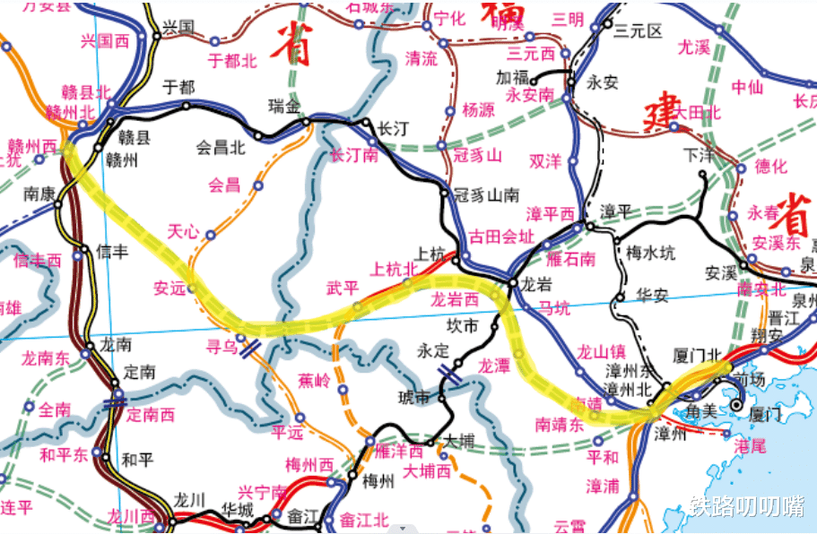赣龙厦高铁是我国“八纵八横”高铁主通道第七横——厦渝通道的重要组成部分,线路规划从江西省赣州市引出,经福建省龙岩市、漳州市至厦门市,线路全长约419公里,其中需要新建的是赣州至漳州段约377公里,而漳州至厦门段的42公里拟利用这两年投产的时速速度350公里的福厦漳高铁,项目总投资约680亿元,拟按双线、时速350公里设计。