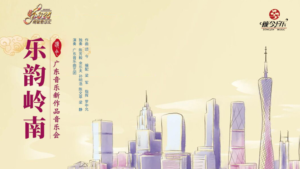《乐韵岭南》是一台全新的广东音乐新作品音乐会。由一级作曲家颂今作曲,梁军编配。作品源自一批创作流传于岭南的原创流行歌曲,音乐富有浓郁的南粤风味,内容充满大湾区的新时代风情。由广东音乐曲艺团乐队在“2024年湾区音乐汇”首演,特邀青年指挥家罗中允担任指挥。