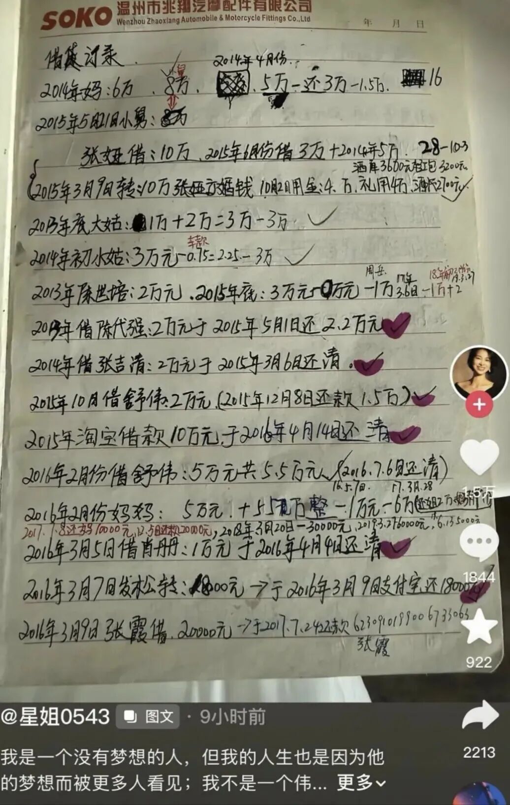 这时的陈星伊,把自己训练成了全能钢铁侠,她学会了记账,把每一笔借款,都记得清清楚楚。