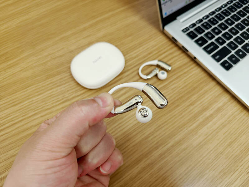 外观上的美观也是南卡OE Nova开放式耳机的一大亮点,微入耳的佩戴方式,源自旋涡声学理念,圆形声学单元旋涡式空气动力学结构,以流线型耳挂设计做到外形紧贴耳廓,日常佩戴轻盈而且稳固,方寸间尽显动感美学。