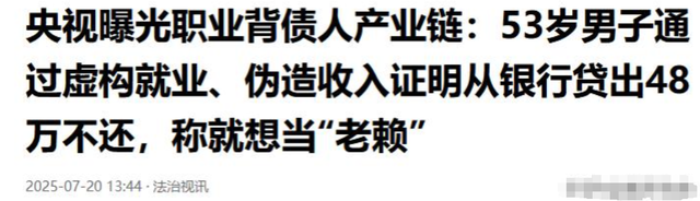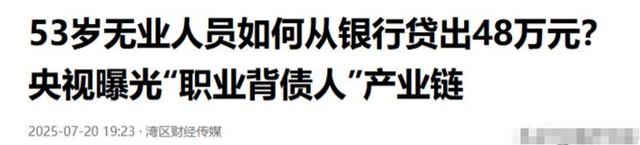 信息来源:53岁无业人员如何从银行贷出48万元?央视曝光“职业背债人”产业链2025-07-20 湾区财经传媒