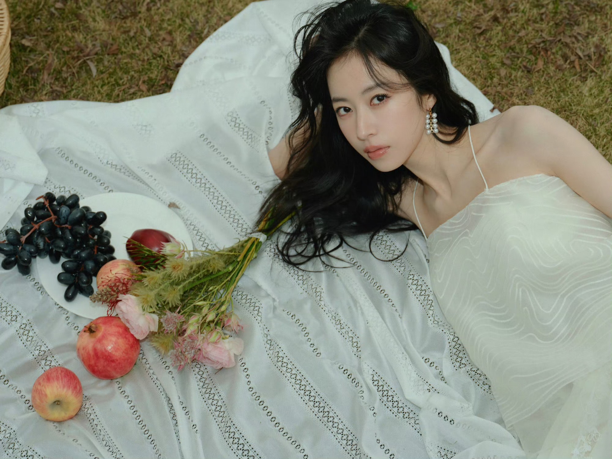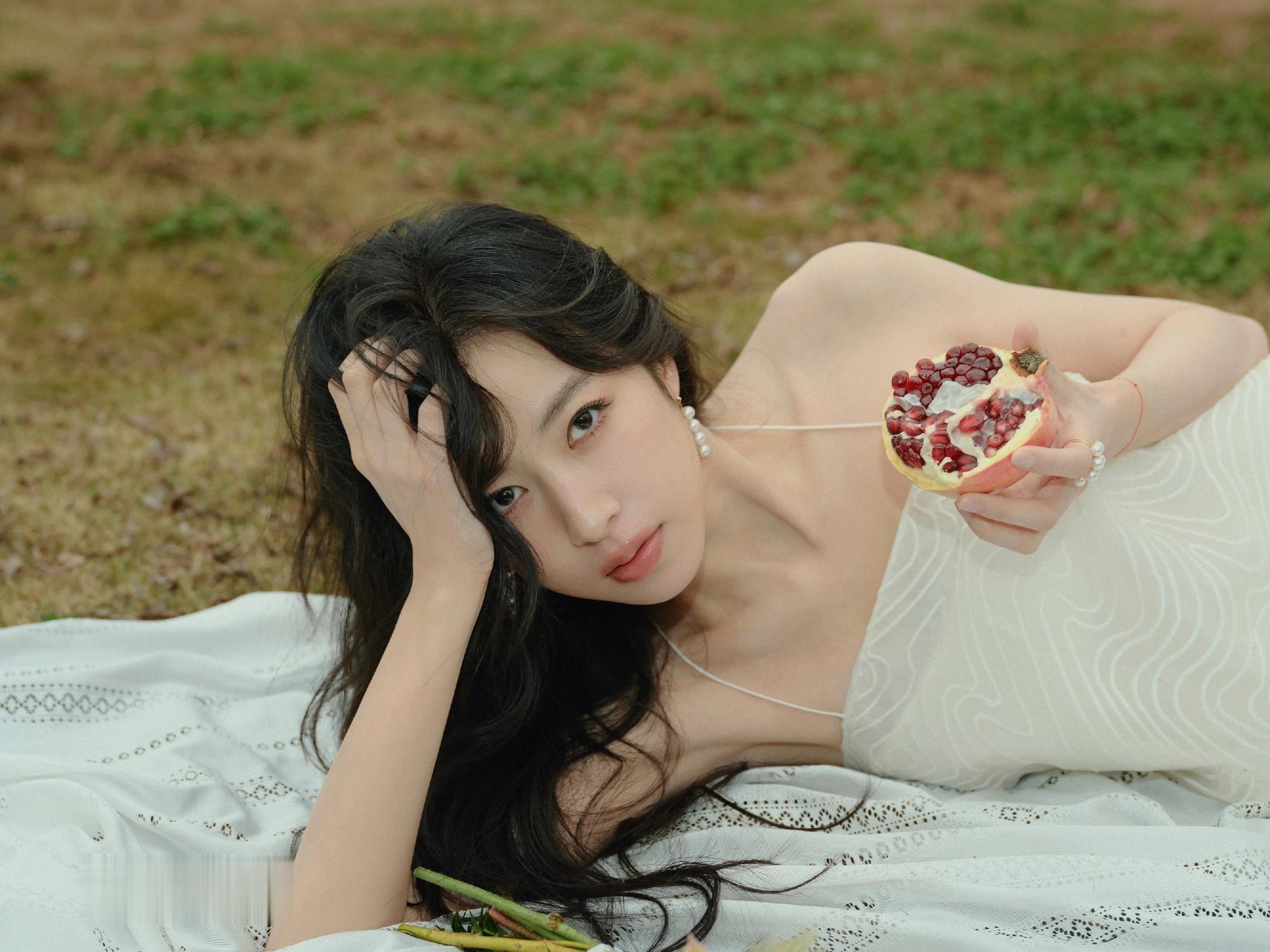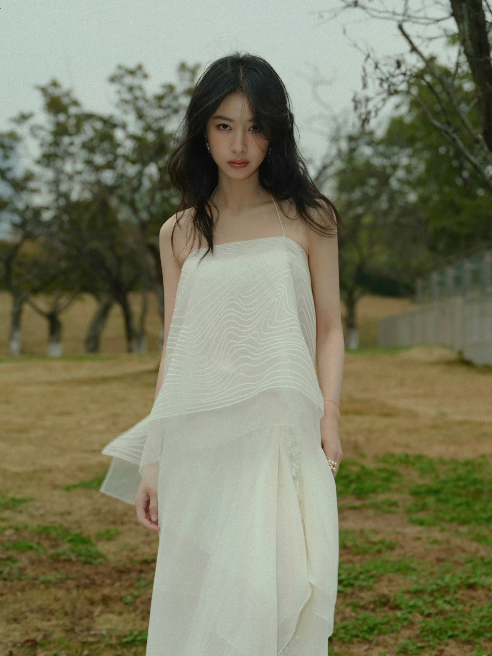 周雨彤纯白吊带连衣裙
