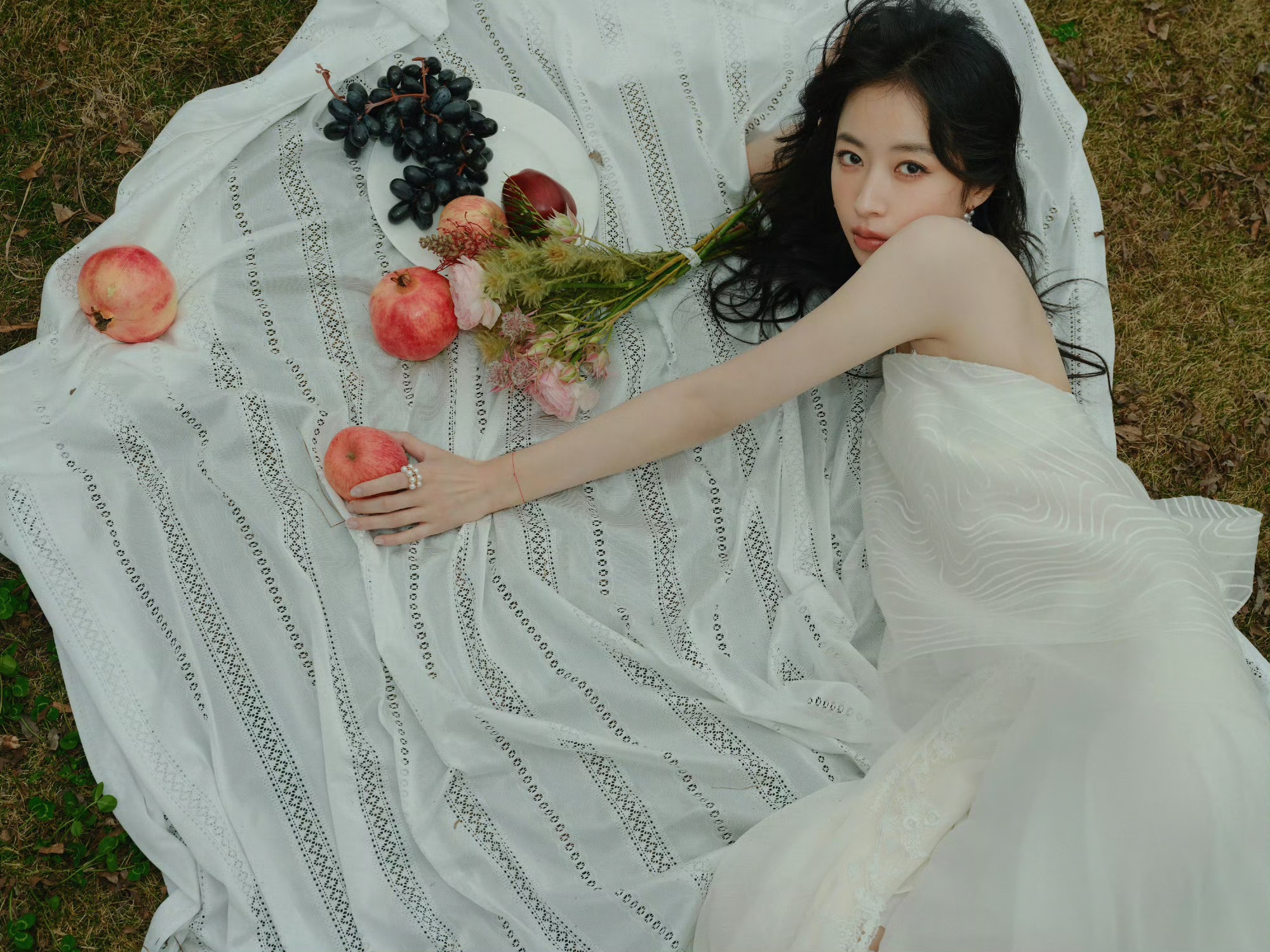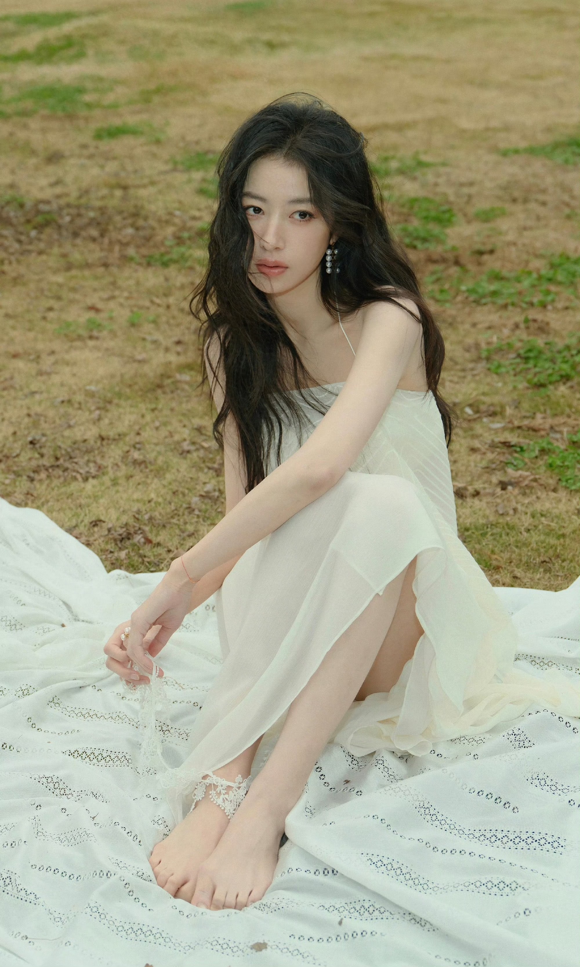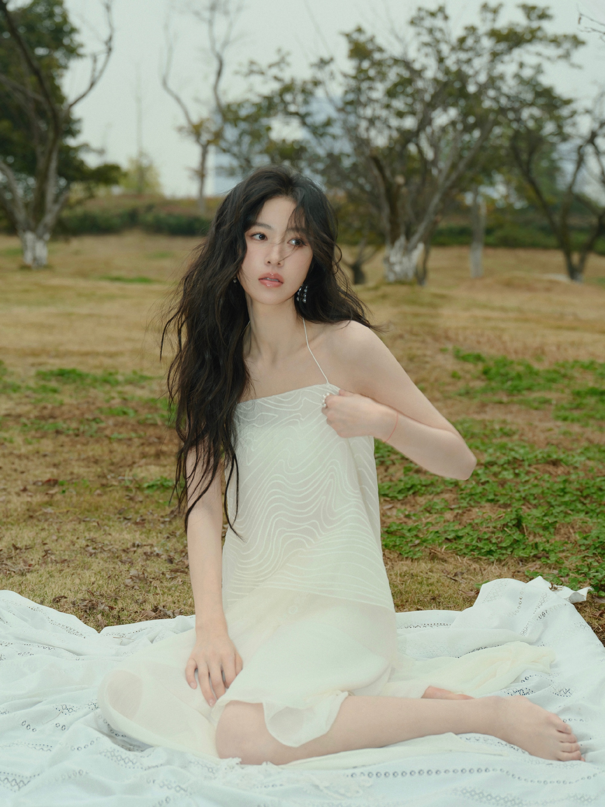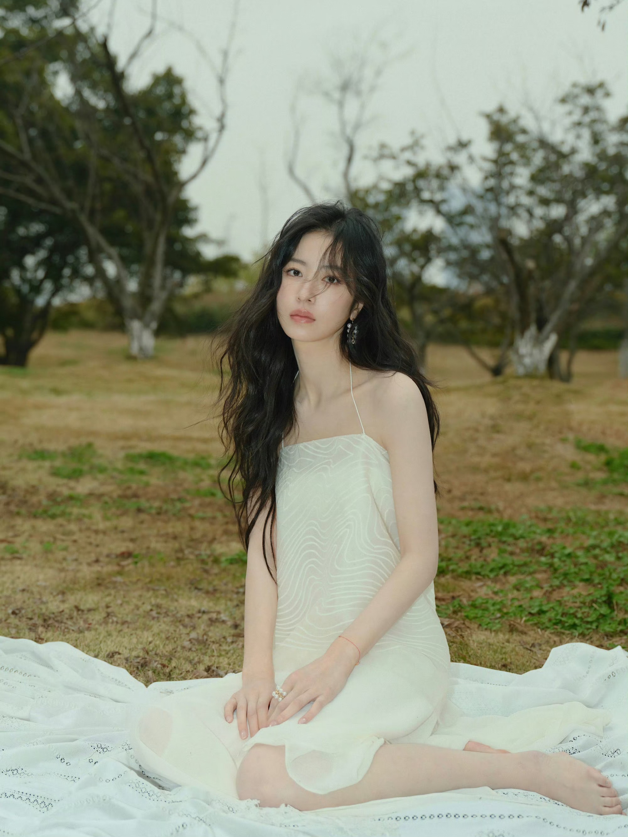 周雨彤纯白吊带连衣裙